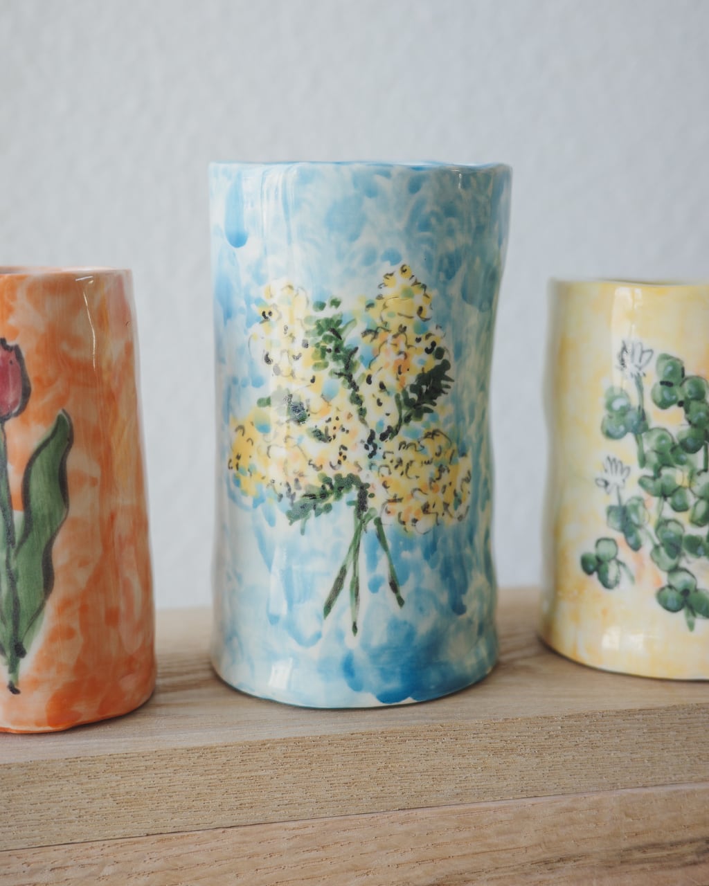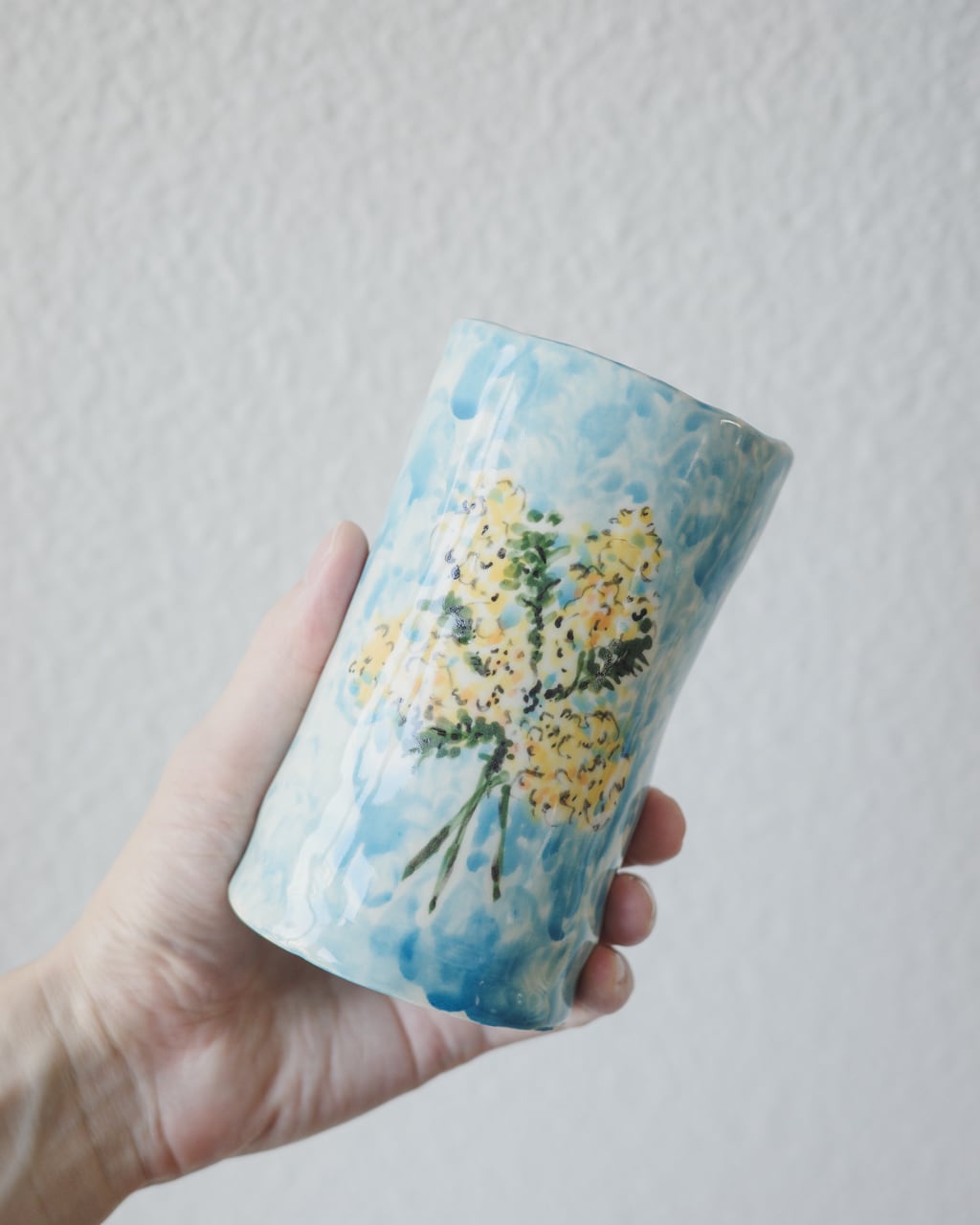 手びねりでひとつひとつ丁寧に仕上げられており、ナチュラルな風合いと愛らしい花の絵柄が日常に彩りを添えます。